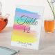 Beautiful rainbow wedding table number sheet with pretty, artistic paint strokes full of bright color. This colorful party reception table number pedestal sign is perfect for an artistic couple or a gay and lesbian reception. The cheerful design is completed with the LGBTQ couple's name and date.