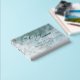 Elegant In Loving Memory, Funeral / Celebration of Life guestbook, with real foil text details in front and spine, hardcover with a beautiful tranquil water beach image in velvety texture in blue, aqua, and white tones, and exquisite modern calligraphy details. Choose from three size options and three foil colors: gold, silver, or rose gold.