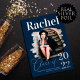This elegant and modern graduation invitation is perfect for your special day. It features real silver foil typography including the graduate's name, graduation year, and "Class of," on top of a simple navy blue background and a brushstroke cut-out halo photo of the guest of honor. It's minimal, chic, unique, and stylish; the perfect design to impress your guests.