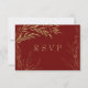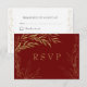 This elegant red and gold RSVP Card has fine line drawn leaves, solid gold leaf foliage and confetti. On the back, you can add your response date and there is a simple form for your guests to complete. The template is set up ready for you to edit the reply date. Please browse my store or message me for matching invitations, stationery and day of event decor.