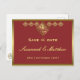 A very elegant wedding save the date postcard, featuring a formal, yet contemporary red and gold theme.
