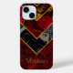 Elegant red black gold girly geometric iPhone 15 Case. To make it extra special, it is also monogrammed and personalized with name or initials or any text you like, click the "customize further" link and use the design tool to modify the design if you like.