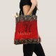 Chic black and red and gold glitter monogram Tote Bag. Beautiful, modern and cool for the trend-savvy and art-loving hip trendsetter. This stylish design would be great for girls who enjoy classy sparkly designs. Add your name and monogram it with a cool and modern calligraphy typography. This makes the perfect sweet 16 birthday, wedding, bridal shower, anniversary, baby shower or bachelorette party gift for someone that loves glam luxury and chic styles. Whether for valentines day, Christmas or any occasion in general this cute tote bag will make a great gift idea for any woman who loves modern sparkly elegance. PLEASE NOTE: These are flat printed graphics - no real glitter, jewels or raised parts.