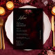 Elegant red black moody floral wedding menu