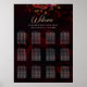 Guide your guests with elegance using this red black moody floral wedding seating poster. The deep black background paired with rich red floral artwork creates a dramatic botanical design that complements a dark romantic wedding theme. This stylish seating chart helps guests easily find their tables while enhancing your reception decor with sophisticated floral beauty.
