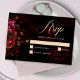 Elegant red black moody floral wedding RSVP card
