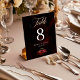 Elegant red black moody floral wedding table number