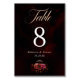 Guide guests to their tables with this elegant red black moody floral wedding table number card. The dramatic black background paired with rich red floral artwork creates a romantic botanical design that enhances your reception tables while keeping your seating arrangement stylish and organized.