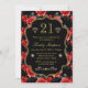 Elegant Red & Black Roses with Gold Frame Birthday Invitation