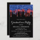 Elegant Red Blue Glitter Drip Patriotic Graduation Invitation