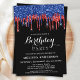 Elegant Red Blue Glitter Drips Patriotic Birthday Invitation