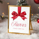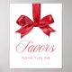 Guide your guests in style with this elegant baby shower favors sign featuring a red watercolor ribbon and bow at the top of the design. “Favors” is displayed in graceful red calligraphy, with customizable text below for your special message or instructions. Perfect for Christmas or winter baby showers, this timeless design adds a festive, coordinated touch to your event. Available as a printed sign or an instant download you can print at home or at your local print shop.