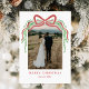Elegant Red Bow with Greenery Photo Christmas Holiday Card