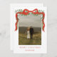 Elegant Red Bow with Greenery Photo Christmas Holiday Card