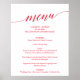 This simple red calligraphy wedding menu sign is perfect for a summer wedding. The neutral design features a minimalist poster decorated with romantic and whimsical red typography. Personalize the sign with your menu options, names, wedding date and location.