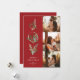 Elegant Red Christmas Botanical JOY 3 Photo Holiday Card