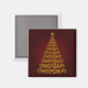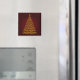 Get into the holiday spirit with this elegant gold tree magnet with a red background.
