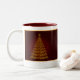 Drink your beverage in this festive elegant gold tree mug with a red background and says Merry Christmas.