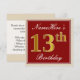 Elegant, Red, Faux Gold 13th Birthday; Custom Name Invitation
