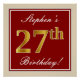 Elegant, Red, Faux Gold 27th Birthday; Custom Name Poster