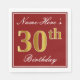 Elegant Red, Faux Gold 30th Birthday + Custom Name Paper Napkins