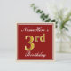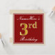 Elegant, Red, Faux Gold 3rd Birthday + Custom Name Invitation