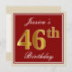 Elegant, Red, Faux Gold 46th Birthday; Custom Name Invitation