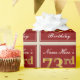 This simple and elegant wrapping paper design features a personalized message like "Name-Here’s 73rd Birthday" (with the "73rd" having a faux/imitation gold-like coloring look) within a red-colored square area featuring a simple border outline. The name is in an elegant white-colored script-like text, and can be personalized. Wrapping paper like this could perhaps be used when wrapping birthday gifts for somebody who is celebrating their seventy third birthday. [~Z0000218]