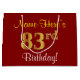 Elegant, Red, Faux Gold 83rd Birthday; Custom Name Large Gift Bag
