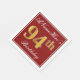 This simple and elegant paper napkin design features a message like "ANameHere’s 94th Birthday" (with the "94th" having a faux gold-like coloring) within a red-colored square area featuring a simple border outline. The name is in a white-colored script-like text, and can be personalized. Napkins like these could perhaps be used at a birthday party for somebody who is celebrating their ninety fourth birthday. [~Z0000138]