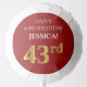 This luxurious and elegant birthday-themed balloon design has the message "HAPPY 43rd BIRTHDAY,", a customizable name, and the birthday number "43rd" having a faux/imitation gold inspired appearance pattern. The background has a red color. A balloon like this might be a fun decoration to use at a party being held in celebration of somebody’s 43rd birthday. [~Z0000483]
