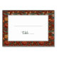 This elegant wedding place card features a rich, floral border with vibrant red and gold tones, complemented by delicate birds perched among the blooms. The central white space provides a clean area for personalization, while the cursive typography adds a touch of sophistication. Perfect for a classic or vintage-themed celebration, this design exudes warmth and charm, inviting guests to partake in an enchanting occasion. Its customizable nature allows it to seamlessly fit into any special event, enhancing the overall aesthetic with its timeless appeal.