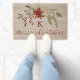 Welcome guests with festive charm using this Christmas rug featuring a classic red poinsettia design and elegant winter floral greenery. “Merry Christmas” is written in a beautiful script, and a personalized initial / monogram is tucked into the holiday bouquet for a refined, custom touch. Perfect as an outdoor doormat or indoor accent, this red floral design adds a warm, elegant greeting to your seasonal décor.