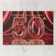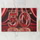 The design features a luxurious red and gold theme, with a bold, glittering "50" adorned with delicate gemstone accents—symbolizing the rare beauty of a love that has sparkled through half a century. Flowing red curtains in the background add a touch of theatrical grandeur, making each placemat feel like a personal stage where love takes the spotlight.