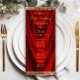 Red and gold birthday party menu and program with beautiful gold border on a red satin background. These red and gold party menus are easily customized with the text of your choice on the front and back in the font style you prefer.