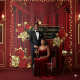 Deep red velvet-style background with elegant stage curtain folds