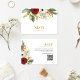 Elegant Red Gold Floral Monogram QR Code Wedding RSVP Card