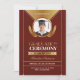 Celebrate your graduate in style with this luxurious red and gold graduation ceremony invitation. The classic laurel wreath, bold typography, and refined layout create a prestigious look inspired by academic excellence. Featuring a centered graduate photo, elegant gold accents, and beautifully framed details, this design is perfect for honoring the Class of 2024 and inviting loved ones to a memorable celebration.