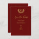 Elegant Red Gold Leaf Monogram Minimalistic Save The Date