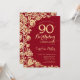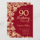 Elegant Red Gold Roses 90th Birthday Invitation