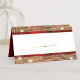 Elegant red and gold table seating place cards. You can remove the gold divider between the guest name and the table number if you prefer.