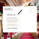 This beautiful save the date postcard will give your friends and family advance notice of your upcoming wedding. It features a clever design with a custom calendar where you can put a heart around your wedding date. The background is a lush marbled red color, and there are decorative gold faux foil frilly accents in the corners. The back has a cute graphic reading "pencil us in" with space for your own custom note.