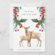 ELEGANT RED GREEN HOLLY BERRY DEER DUO NEW YEAR HOLIDAY CARD