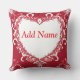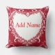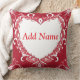 Elegant Red Heart Frame with Floral Patterns Throw Pillow