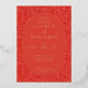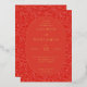 This elegant wedding invitation features a vibrant red background adorned with intricate leaf-like patterns, creating a textured and dynamic look. The central oval frame in gold highlights the text, which is set in classic serif fonts for a refined touch. Perfect for formal celebrations, this design exudes sophistication and warmth, making it ideal for couples seeking an inviting yet stylish invitation.