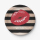 elegant red lips rose gold black stripes pattern paper plates