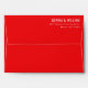 This wedding envelope features a striking minimalist design with a bold red background and clean white text, creating an elegant contrast. The layout is simple yet sophisticated, focusing on the names and address in a modern sans-serif font that exudes clarity and refinement. Perfect for formal invitations, this design conveys a sense of contemporary style and sophistication, making it ideal for couples looking to make a stylish statement at their special event.