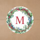 Elegant Red Monogram Initial Christmas Wreath Classic Round Sticker