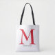 Simple tote bag is personalized with a large monogram initial in red and your full name below in black. Ideal for yourself, for your bridesmaids, book club, graduation gift, birthday gift, or any occasion. MORE colors in our store.