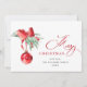 Elegant Red Ornament Merry Christmas Greeting Holiday Card.